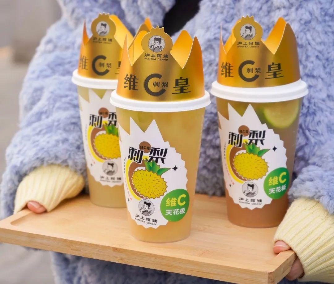 茶饮品牌充分利用了这一特点。 沪上阿姨和书亦烧仙草均在刺梨饮品杯身凸显“维C大boss”“维C天花板”等描述,甚至为了进一步强化这一卖点,沪上阿姨还为刺梨饮品定制了“皇冠”。
