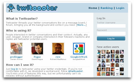 Twitoaster是法国开发者Arnaud Meunier的大作,他今天在Twitter上说,在四月份的Chirp大会上他认识了Twitter的一些人,自己即将为Twitter效力。Twitoaster的本领之一就是能赋予Twitter跟帖式对话。