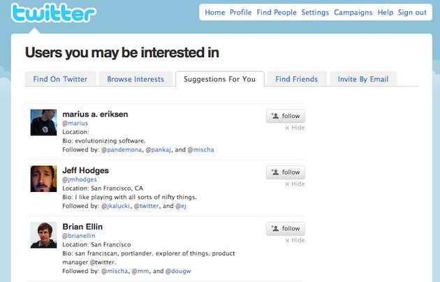 上个月,我们曾报道了Twitter推出‘共同关注’的功能,用户在访问别人的主页时可以看到你们共同关注的人。这是个很有趣的功能,不过它的用处似乎不是很大。今天Twitter又再次模仿Facebook推出‘推荐’功能,它可以根据你所关注的人,以及你关注的人所关注的人,推荐一些新人供你关注。