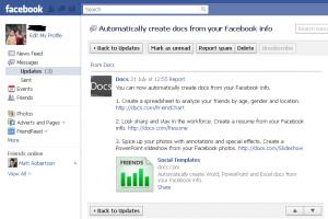 今天上Facebook,偶然看到一个朋友的更新状态中推荐了docs应用,里面写道:“Automatically create docs from your Facebook info”(根据你的Facebook信息自动创建文档)。这是由docs新推出的一个叫“social templates”的文档模板。