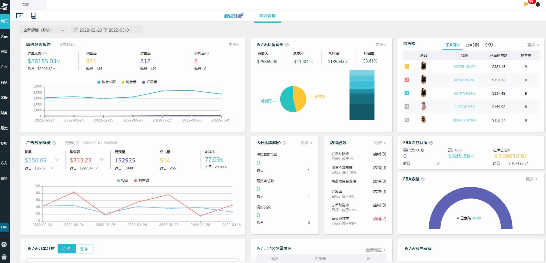 1、如果店铺很多,建议使用软件,比如船长BI。船长BI的主要功能就是不用做数据,通过对接亚马逊,一览表自动分析出来,非常的清晰。