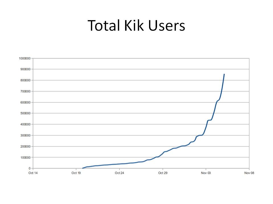 Kik是一个手机通信服务,在刚刚发布Kik Messenger15天之后,用户从0增加到了100万。