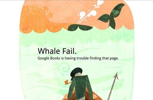 Google图书的错误页面也采用了搁浅鲸鱼的造型。