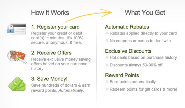 Offermatic专注于本地商家和全国连锁商店,但不是一家普通的购物交易网站,他们不提供打印优惠券,买家也无须出示任何优惠券。相反,你把你的信用卡和借记卡关联到这个服务,然后它会自动分析你的购物历史,然后根据你的购物历史提供产品和服务信息。