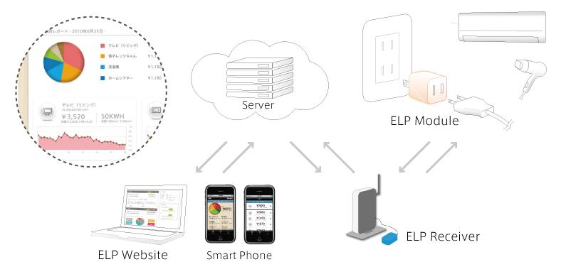 *ELP 模块(下图中ELP Module):在每个安装在墙上的插头上安装一个,这样所有的电流都会通过这个模块,它们也就可以知道电量消耗了
