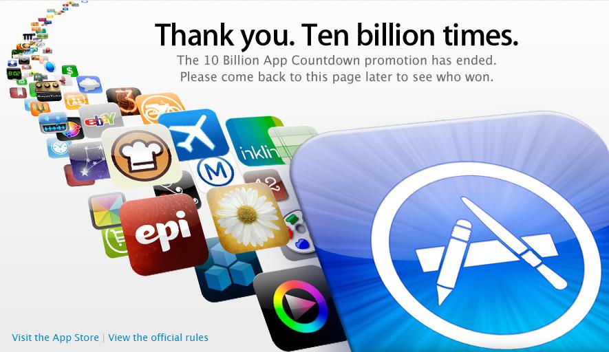 宣布其应用商店里的应用下载次数已经突破100亿次。