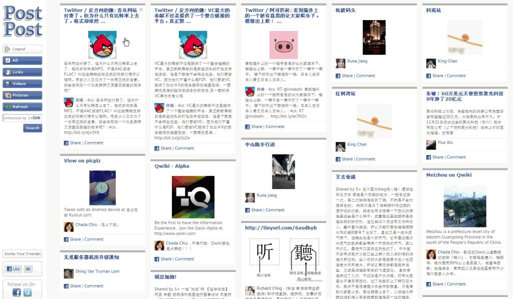 PostPost。屏幕越大越爽,即时显示来自Facebook好友的新闻、链接、图片和视频,不用离开页面就可以播放视频。这是一段