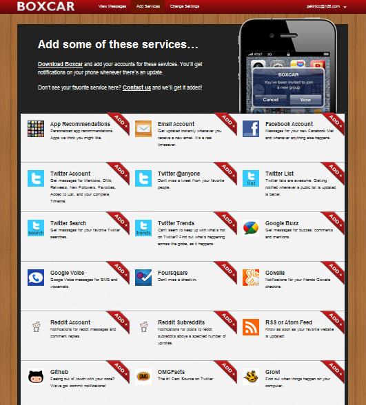 的人性化的推送服务(设置“不推送时段”、覆盖几乎所有主流sns、微博服务等……),Boxcar已经成为很多用户在iOS上实时阅读Facebook、Twitter、Buzz等社交讯息的必备武器。此外,Boxcar还可以用于接收来自Growl等桌面客户端的推送信息,要用一句话来描述他们的理想,那就是“Push Notification for Everything” 。