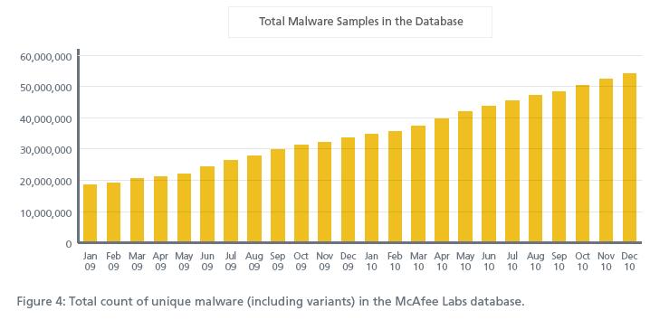 图三:McAfee实验室数据库中的恶意软件样品总量