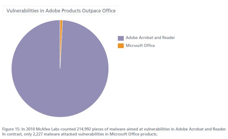 *Adobe Acrobat 是最容易被用来发动攻击的软件。