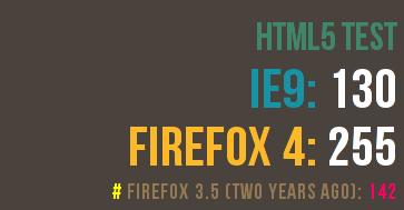 下图是IE9和Firefox4的caniuse测试结果对比: