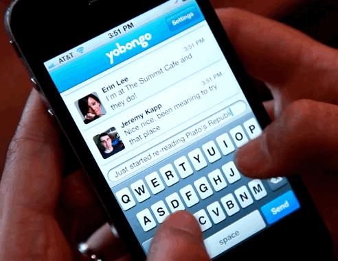 Yobongo自称可以让你通过iPhone和附近的人进行有趣的聊天。你