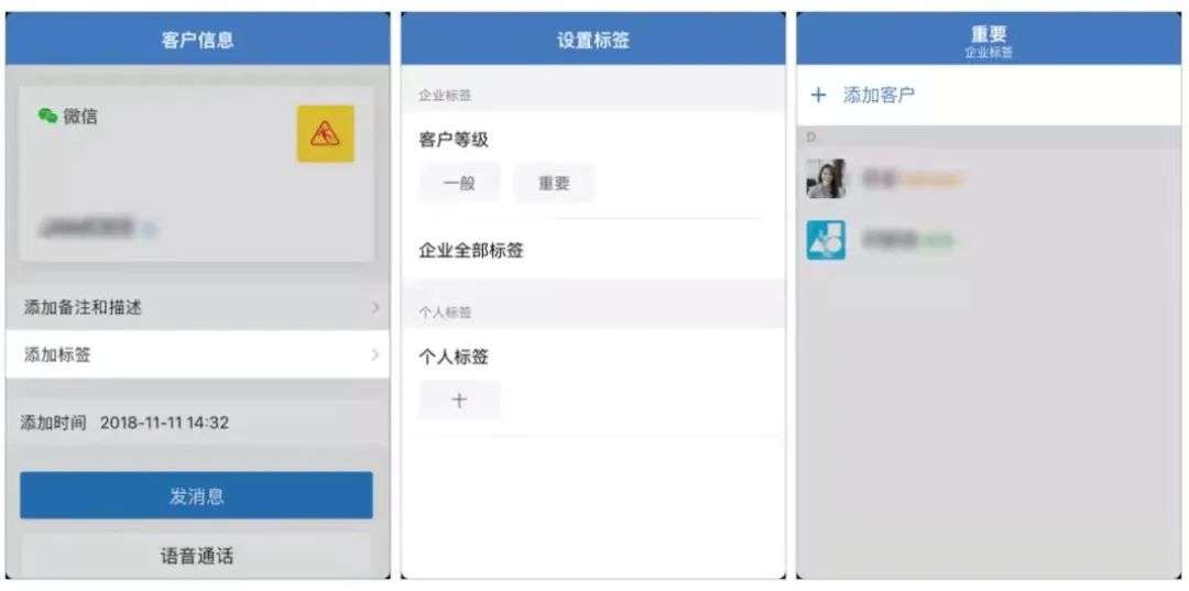 为客户添加合适的标签,可以选择企业标签、也可选择个人标签。