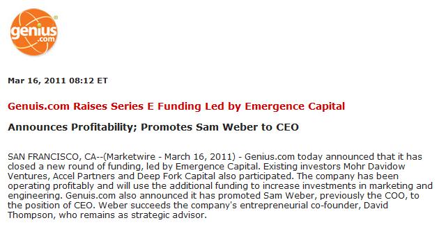 Genius.com融资发布会上果断将自己公司名字错拼为Genuis.com