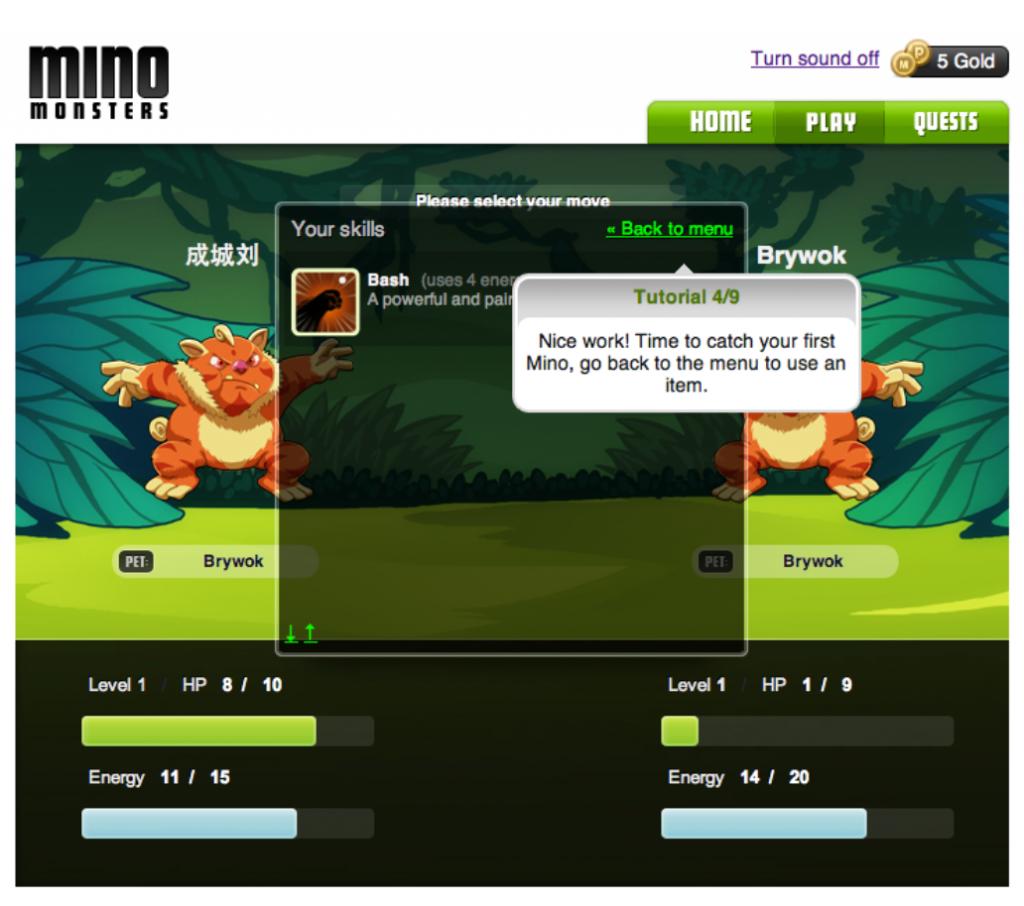 MinoMonsters。MinoMonster 是一个社交游戏,用户需要使用Facebook 帐号才能登录。此后就可以进行宠物大战了。