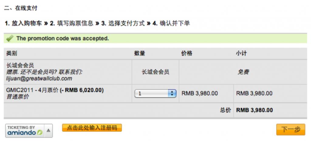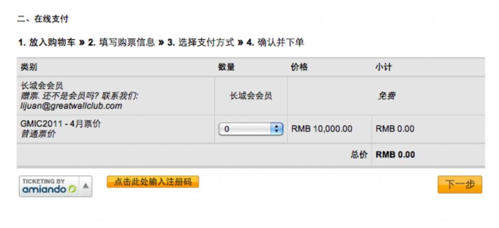 GMIC-QD-002 注册、购买门票地址: http://gmic.greatwallclub.com/cn/register 使用方法:再以上页面选择[在线支付],输入注册码即可