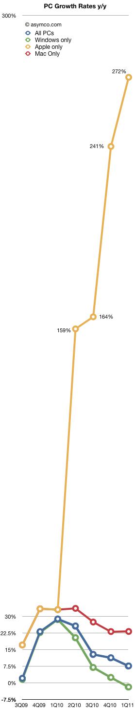基本的一点是Windows电脑出货量减少了2.0%,而OSX电脑(不包括iPhone和iPod touch)增长了272%。