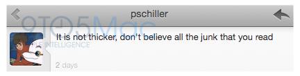 最近很多消息说白色的 iPhone4 比黑色的要厚,有人在Twitter上问苹果高管这件事是否属实,并附上了上面这张图片,意外的是他竟然收到了这位高管的回复,只是是通过私信的方式: