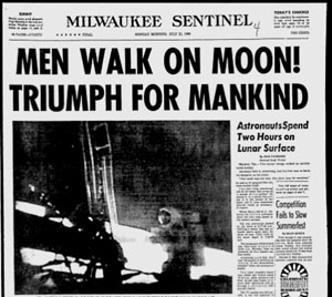 2000份不同报纸进行了数字化工作(上图就是一份69年7月21日报纸的头版头条)。