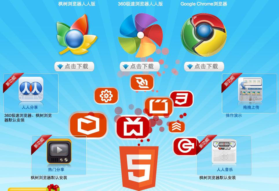人人此次推出了3款基于Chrome 内核的浏览器,其中集成的人人的功能包括「人人分享」、「热门分享」、「人人音乐」、「拖拽上传」。这些功能对于很多人人网深度用户来说,还是非常方便的,尤其是照片批量「拖拽上传」,感兴趣的朋友可以看看下方的演示视频。