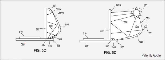 折叠反光板来给显示屏增加亮度,此外还有传闻说他们也在考虑将太阳能电池融合进笔记本。