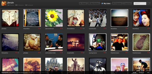 Inkstagram同样是一个第三方网页端,你可以以小、中等、大图等方式浏览照片,但是它有个特别的功能:My Likes,