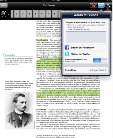 今年2月份放弃硬件业务,专注提供相关软件及服务之后,致力于教科书电子化的Kno 终于在昨日发布了其iPad 教科书应用Textbooks(