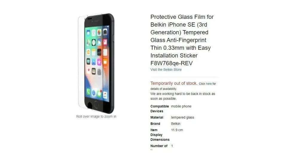 近日,知名苹果配件商 Belkin 疑似在亚马逊上架了第三代 iPhone SE 的保护膜,图中可以看到手机外观,还是熟悉的样子,还是熟悉的配方。不过亚马逊很快就把这个产品下架了,真实性依然存疑。