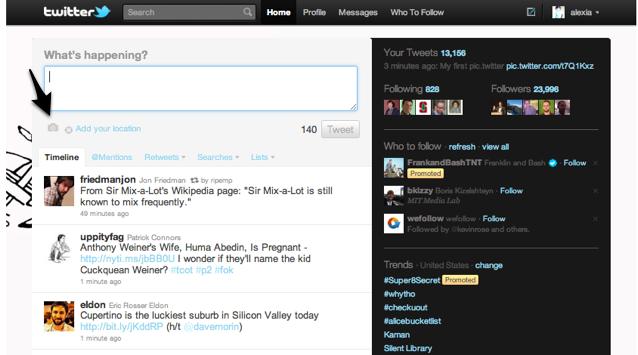 新功能允许用户上传图片,在Timeline里以短链接的形式显示,上传图片的按钮显示在“add your location”左侧(看下图),目前这个功能还不能在手机网页端使用。
