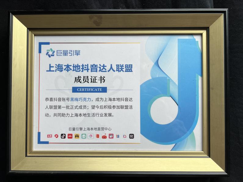 抖音元老级的探店博主、当时仅有2万粉丝的“黑梅巧克力”(下称黑梅)也在其中,她还曾获得第一批“上海本地杰出达人联盟成员证书”。