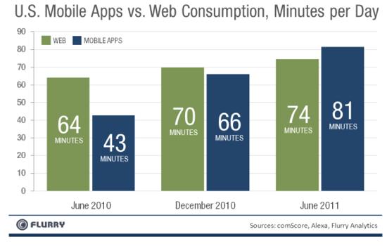 Flurry: 人们花在手机应用(App)上的时间已经超过在电脑上使用浏览器的时间