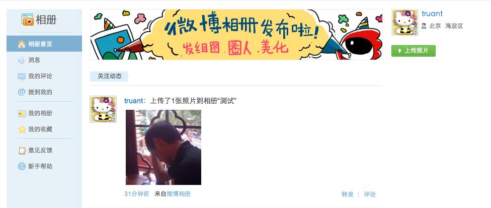 新浪微博相册曝光,直到今天,我终于有机会体验这个新功能。