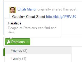 有人用自己的Google账户登录了Google+,然后登录了Google Apps账户「在多账户登录模式下」,接着Google让他登出所有账户。这时他选择首先用Apps账户登录,之后用Google账户登录,此时奇怪的事情发生了,当他想在Google+上分享东西时,发现之前显示“公开(Public)”的地方显示的是“Paralaus”,然后提示只有“Paralaus”上的人才能看到他所分享的内容。也就是说,在一种混合模式下。