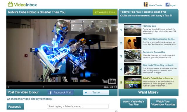 VideoInbox是其中最新的一个,VideoInbox提供邮件列表和Facebook应用,用户可以观看、分享那些引起病毒式传播的视频。通过Facebook Connect注册之后,你每天就会收到由人工挑选的Youtube视频,昨天我看了10个,这些视频有趣(或者说优秀)到我想把它们全部上传到Youku上分享给大家。