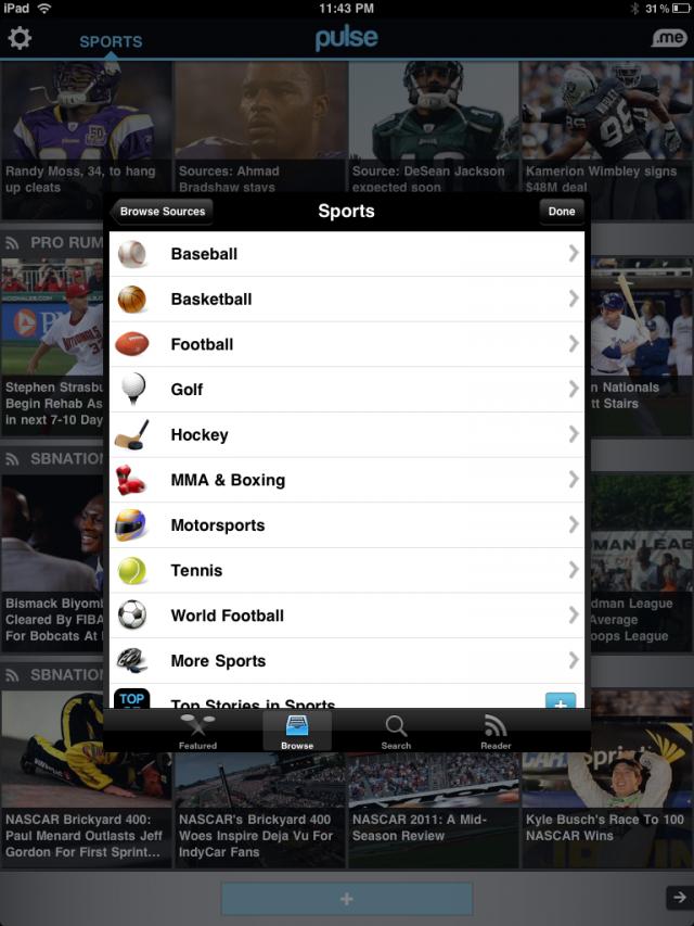 通过这次合作,Pulse将重新规划体育分类,将ESPN和SB Nation, 雅虎体育等一起放到推荐栏目里。通过Pulse,现在你还可以只获取单独某一项目的体育新闻,比如NBA。