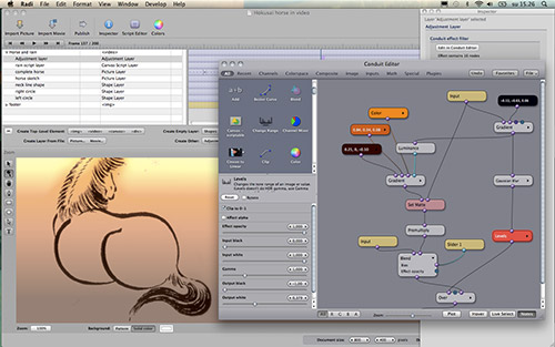 Conduit是一个强大的可视化环境,可用来生成即时视频过滤器和其他效果。Radi提供了多种使用Conduit的方法。