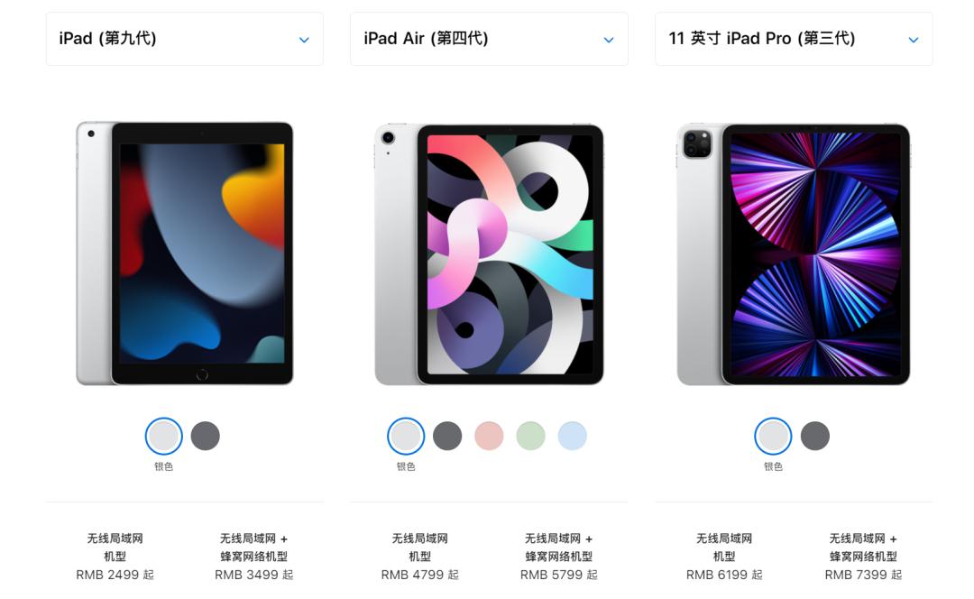 中端级iPad Air的大存储版本会与iPad Pro起步价十分接近,而iPad Pro则有着顶级的M1芯片、120Hz高刷新率以及MiniLED屏幕。