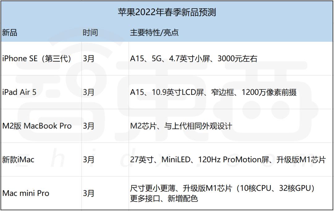 ▲苹果3月发布会主要新品及特性前瞻,根据多位爆料人信息汇总整理