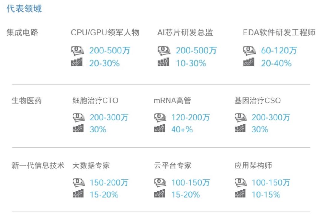 具体来看,芯片、生物医药等技术创新领域的人才供需失衡。如芯片供应持续紧缺,薪酬表现为各职能全线上涨。
