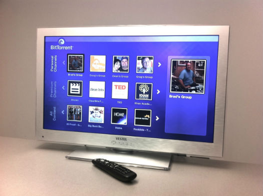 出现在了柏林消费展览上,电视机由土耳其电视制造商 Vestel 生产,使用了来自 BitTorrent 技术,允许用户在自家联网的电视上搜索、下载和播放他们最喜欢的多媒体内容。不需要解码器、转换文件格式等,可以直接在电视上播放。
