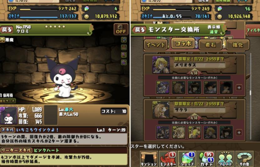 玩家可以通过不同方式收集角色,比如挑战地下城(有概率获得掉落角色)、从商店购买,或者抽卡。对日本手游来说,抽卡(角色)可能产生巨大的影响力,例如在2018年和2020年,两次高人气角色的抽卡活动曾推动《智龙迷城》下载量飙升。