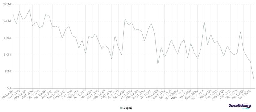 《智龙迷城》在日本市场的收入变化趋势