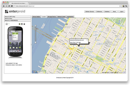 Enterproid允许用户在无需安装任何软件的情况下进行远程管理。如果你的手机丢了,你只需远程删除你的公司数据或手机上的所有数据即可。此外,你还可以查看手机的使用报告,管理从Android市场下载的应用。