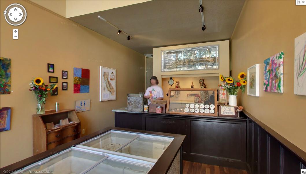 此处进入Google地图,然后点击左边的”Scream Sorbet”,再然后点击右边的“Click to view”就可以查看该店内360度高清全景照片了。
