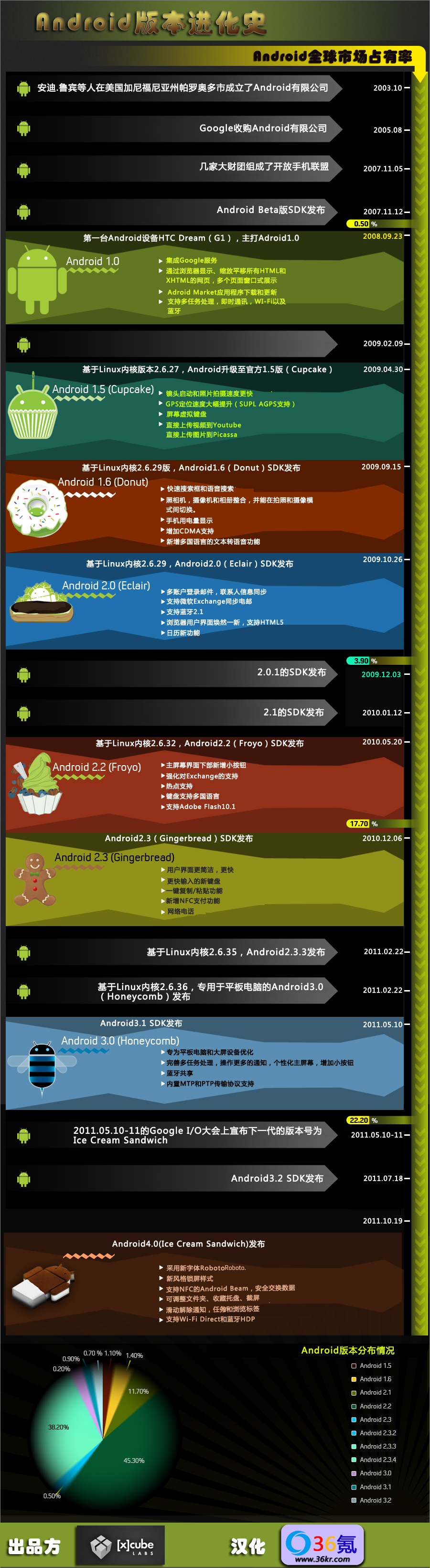 昨天我们向大家介绍了<a title="LINUX的前世今生【信息图】" href="http://www.36kr.com/p/57556.html" target="_blank">Linux的发展史</a>,今天我们来看看基于Linux的Android的发展史。