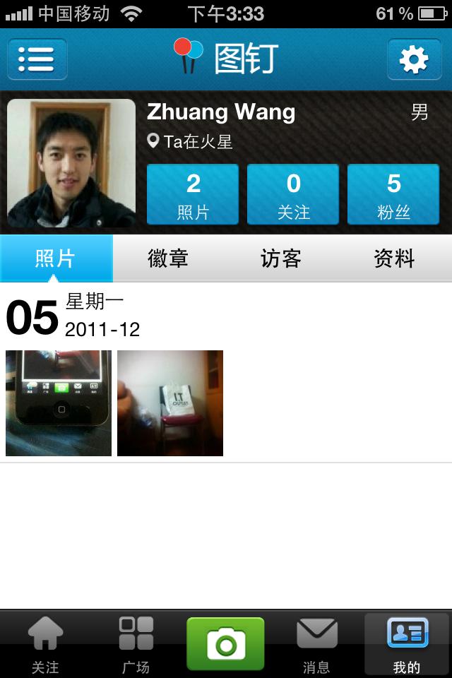 用户可以创建照片/视频/音频,比较大而全,但是也积累了大概300万用户,直到2010年,他们将gypsii拆分成两个产品,一个是图钉,一个是e领地(现在叫微领地)。今年9月份他们获得新浪投资并联合成立了一家合资公司,由新浪控股,我们得知的投资金额是在1000万元以上。