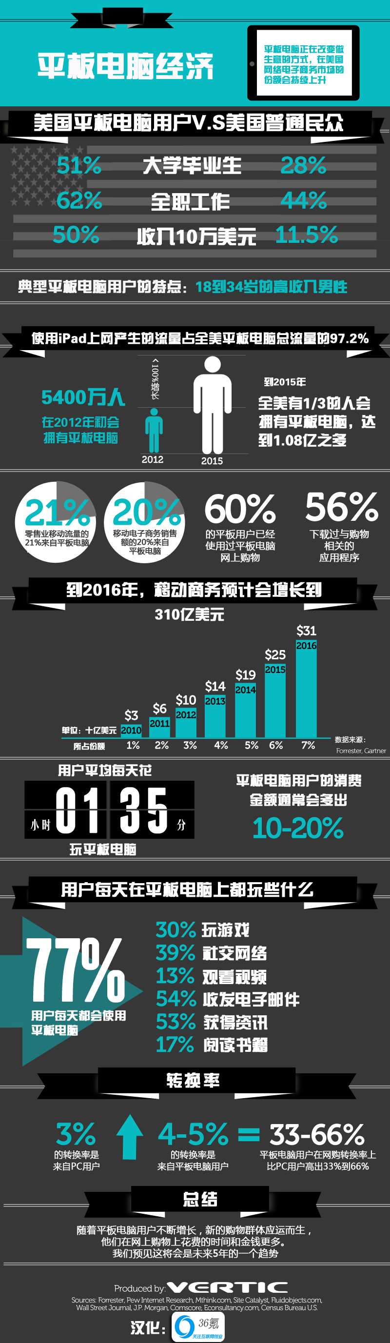 那么人们在平板电脑上都做什么呢?对移动电子商务有什么影响呢?通过下面这张信息图我们可以略见一斑。