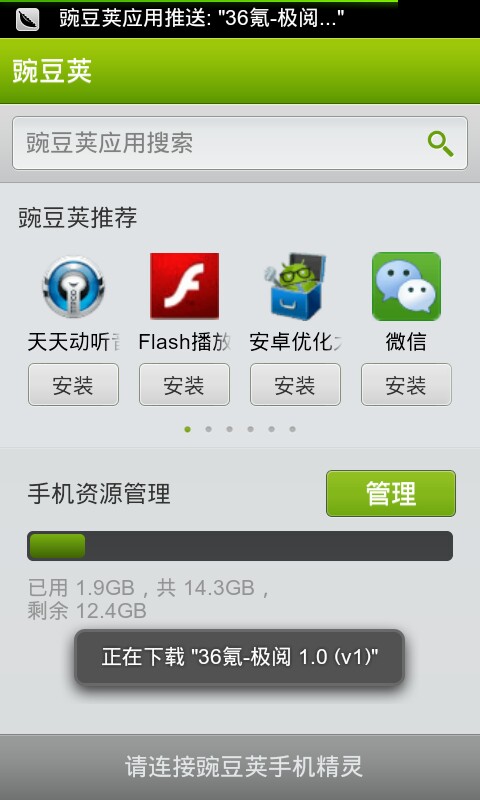 网页版豌豆荚可以让用户非常轻松找到自己的应用,并且“推送”安装到自己的手机上。需要使用“推送”功能,用户需要在手机端先安装