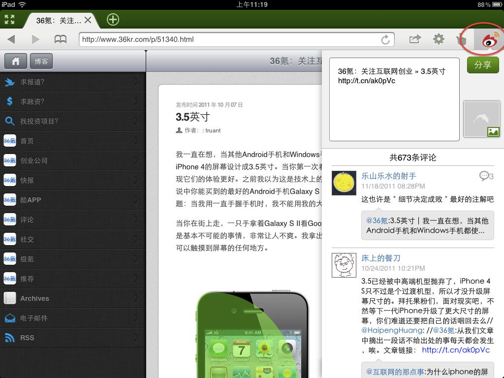 海豚浏览器是我见过的创业公司中做浏览器创新最多,发布新版本最快的一家,海豚微博墙是个很有意思的功能,我也想看看这会对人们在移动设备上的社会化阅读产生什么样的影响。