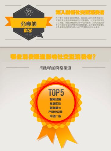 结果发现对消费者决策最有影响力的渠道是:搜索引擎、品牌网站、新闻稿件、点评网站和网络广告。比如,旅游产品、汽车和电子产品等大众消费品受搜索引擎的影响最大,其中93%旅游产品买家会在购买前通过搜索引擎进行调查;而婴儿产品、音乐和美容产品等则受Facebook的影响最大,其中63%婴儿用品购买者会在购物之前上Facebook进行调查。